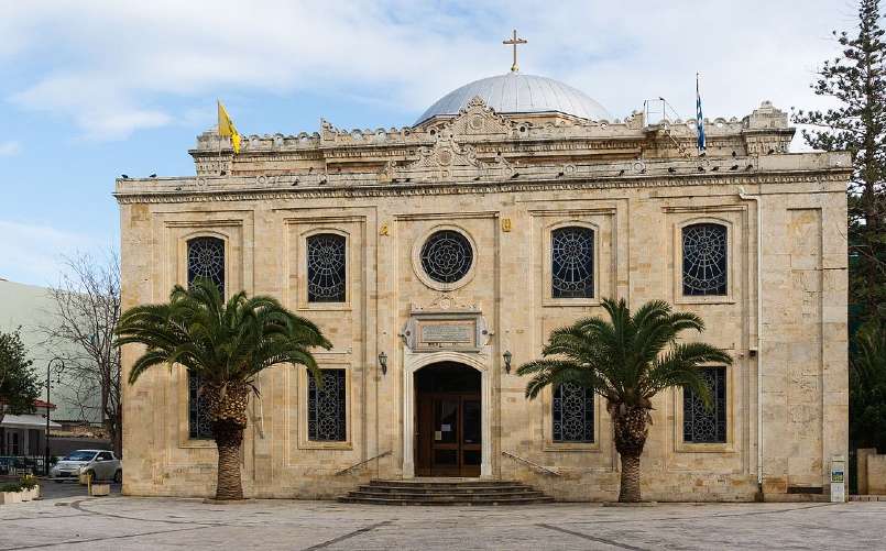 Ο ναός ανακηρύχθηκε το 2013 καθεδρικός ναός της αρχιεπισκοπής Κρήτης. Το κτίριο είναι εκλεκτικού ρυθμού τετρακιόνιος ναός με τρούλο. Στην εξωτερική πλευρά του ναού κυριαρχούν τα κατακόρυφα στοιχεία, ενώ στην κορυφή του υπάρχει λιθόγλυπτη επίστεψη
